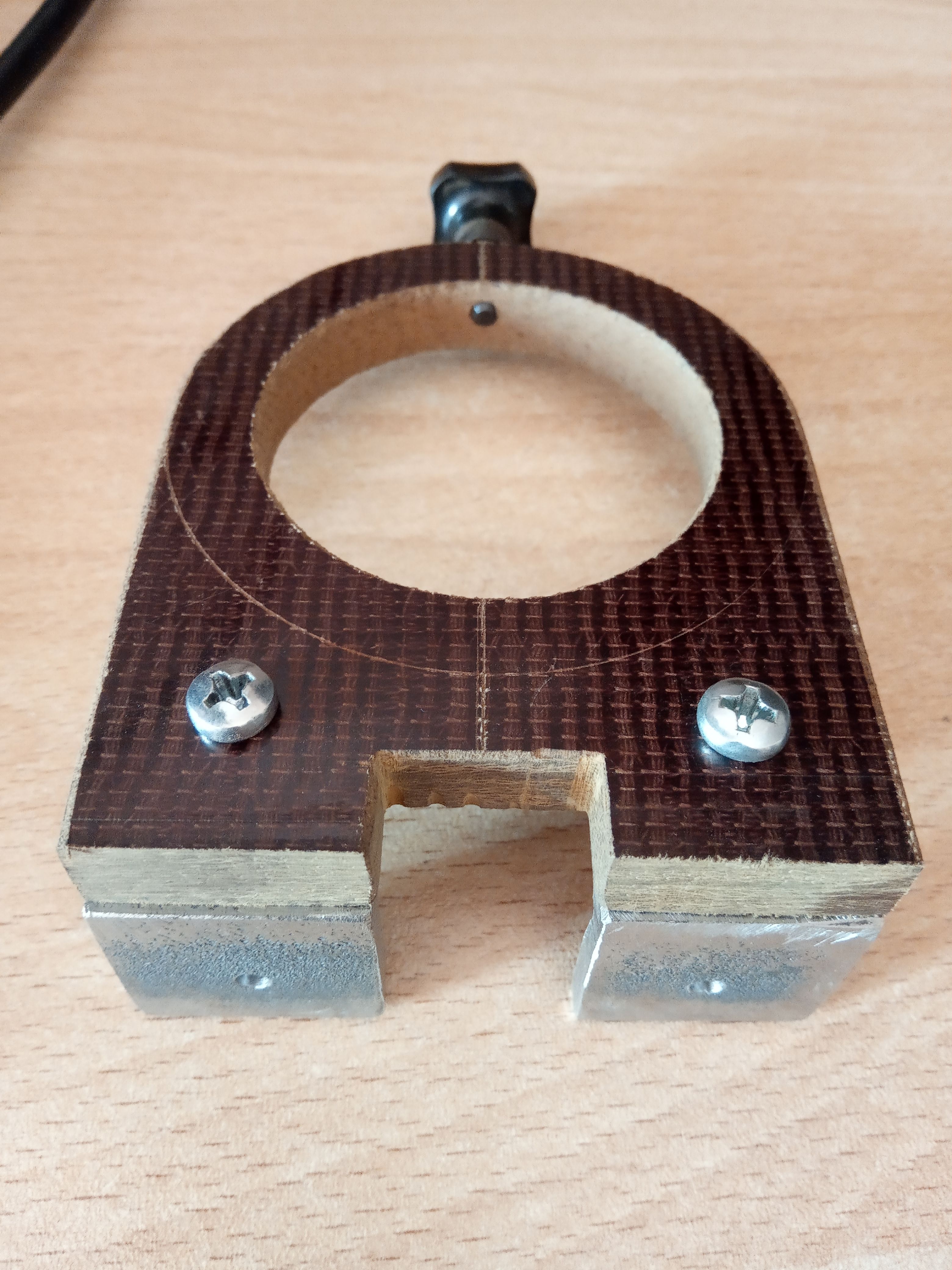 Сделал сегодня опору под объектив, так как объектив от фотоувеличителя и не имеет кольца наводки резкости, он будет жёстко крепиться в этой опоре, резкость будет наводиться геликоидом, при вращении геликоида камера будет по направляющей отъезжать или приближаться к объективу, сам объектив будет неподвижным.
