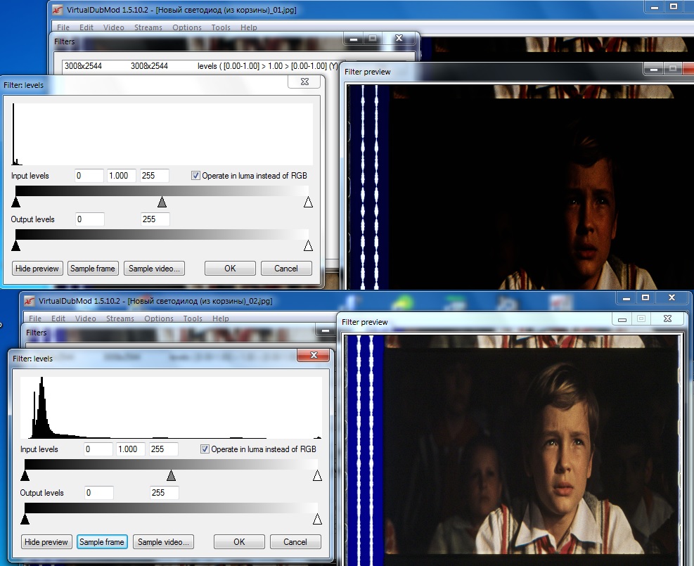 Можно ещё немного уменьшить и посмотреть в других местах (на тёмных и на светлых кадрах), как будет выглядеть гистограмма.