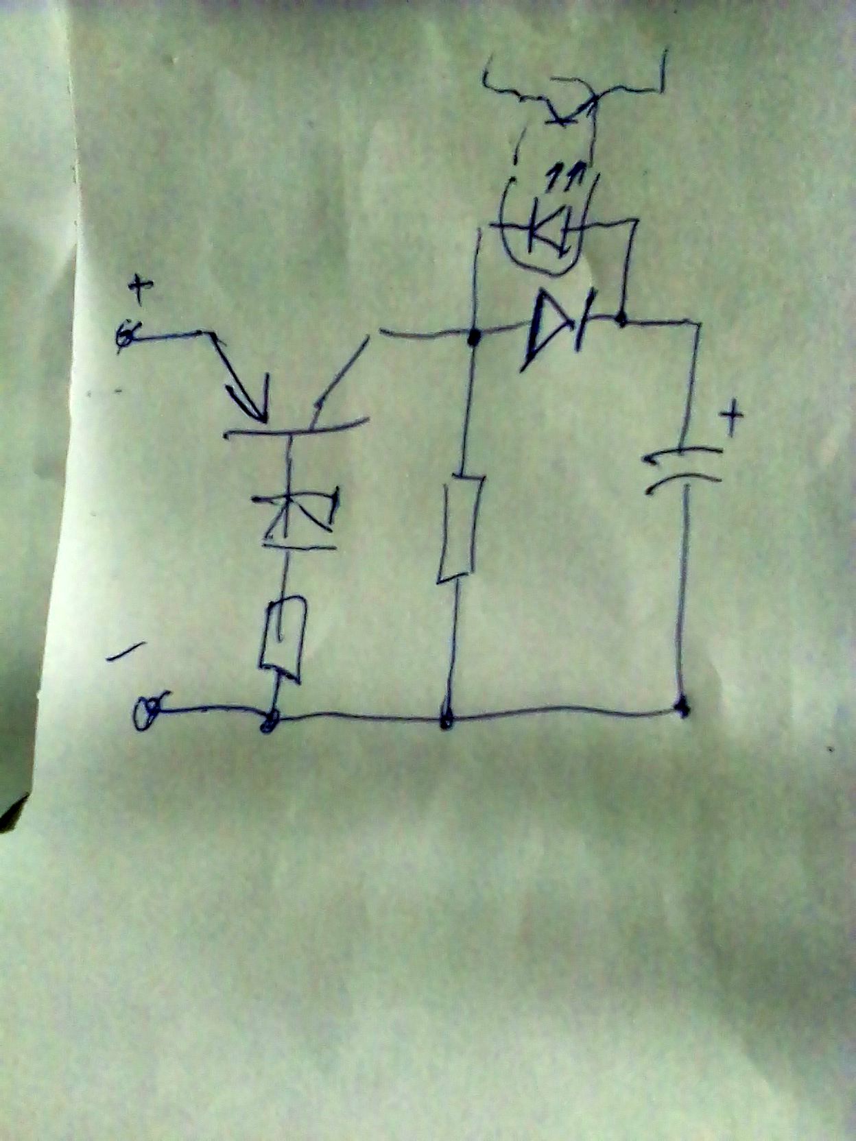 Стабилитрон с напряжением стабилизации на пару вольт ниже чем напряжение питания. Ну или какой найдете от 5 вольт до 10 - любой! Резистор от 300 Ом до 3 кОм, не критично, лишь бы развить достаточный ток для открытия транзистора. Соответсвенно для 10 вольтового стабилитрона резистор поменьше, для пятивольтового - побольше. Сам транзистор - да какой найдешь, лишь p-n-p. Лучше чтоб ток коллектора побольше, но и коэффициент усиления не хуже 30-и. Но если найдется только маломощный - не беда, добавь в разрыв меж коллектором и диодом токоограничивающий резистор порядка 100 ом и даже самый хилый транзистор не сгорит.