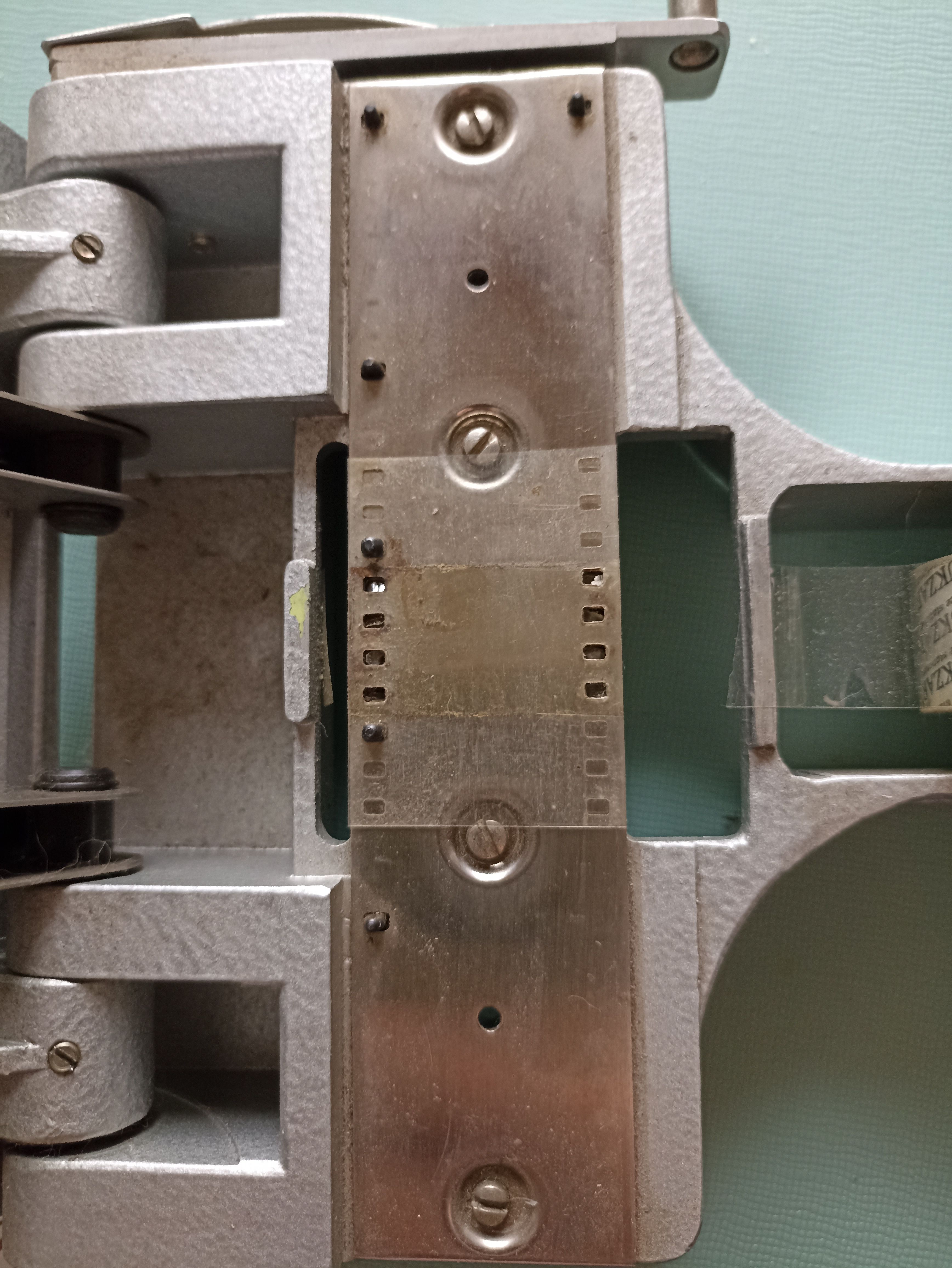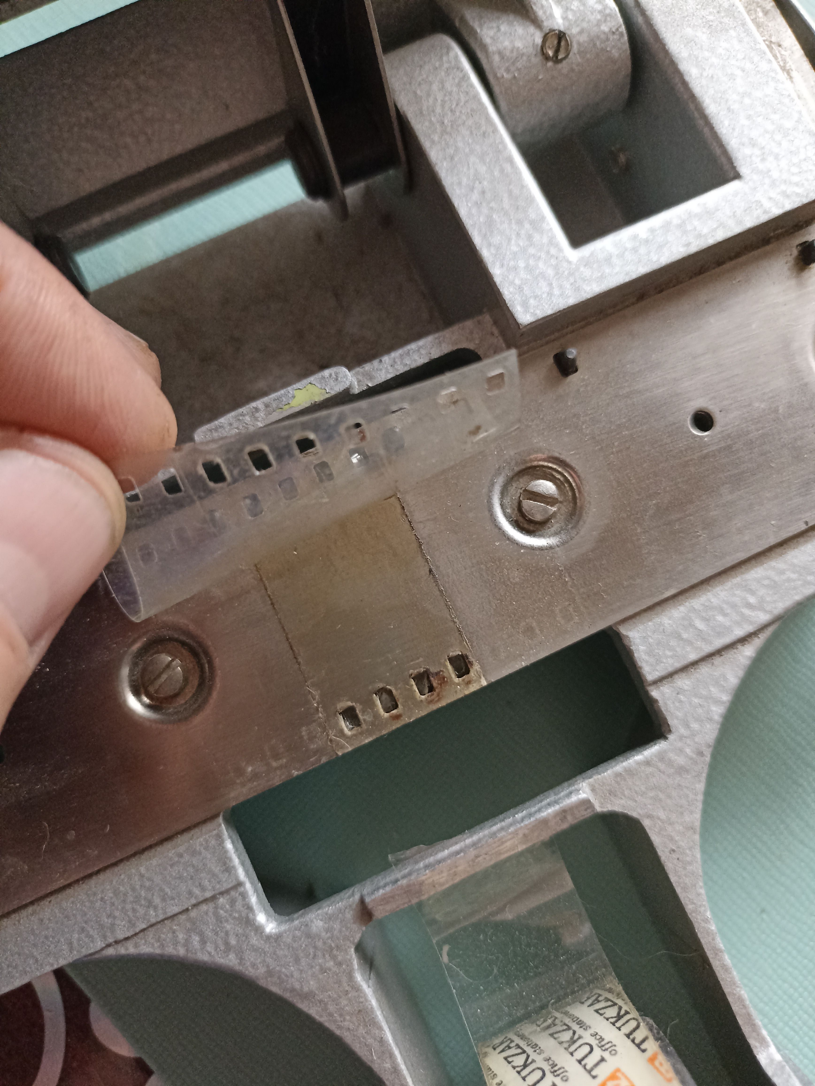 Ну и в Вашем опыте по замене скотча куском кинопленки: как этот кусок держится - он же не скотч, не прилипнет? Пробиваете ли его, или просто укладываете совместив имеющиеся в кинопленке перфорации с отверстиями матрицы?